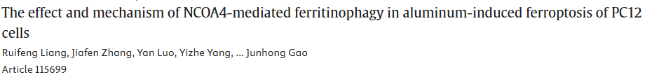 概述:铝通过激活核受体辅激活因子4(NCOA4)介导的铁蛋白自噬,导致铁代谢紊乱、氧化应激和铁死亡,从而加剧神经毒性,这一过程通过去铁胺和抑制铁蛋白自噬得以逆转,提示NCOA4在铝诱导的铁死亡中的关键作用。
