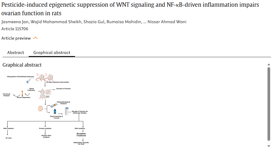 概述:氯虫苯甲酰胺、敌敌畏及其联合暴露通过表观遗传机制抑制WNT信号传导和NF-κB驱动的炎症,导致大鼠卵巢功能受损,结果发现基因特异性的DNA甲基化变化和炎症反应是暴露的关键生物标志物。