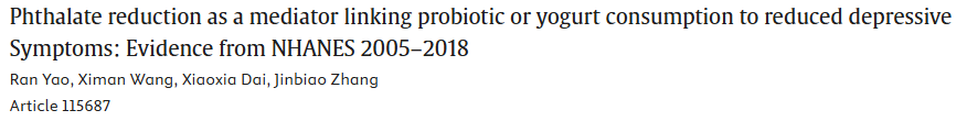 概述:益生菌/酸奶消费通过降低邻苯二甲酸酯暴露与抑郁症状减轻相关,且该效应在女性中尤为显著,这些发现揭示了邻苯二甲酸酯作为内分泌干扰化学物质的潜在影响,并为进一步研究其机制提供了方向。
