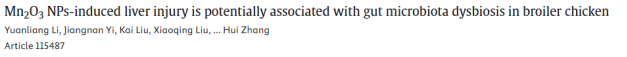 概述:Mn2O3纳米颗粒可致肉鸡肝损伤及线粒体功能障碍,并引起肠屏障破坏和菌群失衡,提示其经肠-肝轴介导的潜在毒性机制。