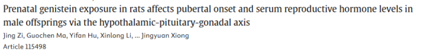 12. 大鼠孕期染料木素暴露通过下丘脑-垂体-性腺轴影响雄性子代的青春期发育起始及血清生殖激素水平
