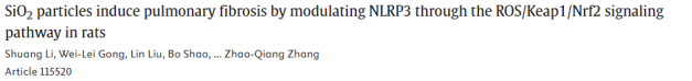 概述:SiO₂颗粒通过ROS/Keap1/Nrf2信号通路激活NLRP3炎性小体,促进大鼠肺纤维化进程。