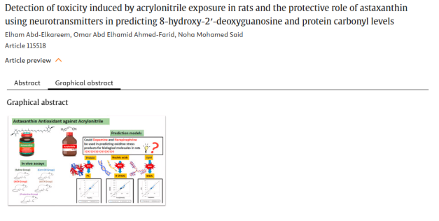 23. 基于神经递质预测8-羟基-2′-脱氧鸟苷和蛋白羰基水平的丙烯腈毒性检测及虾青素的保护作用