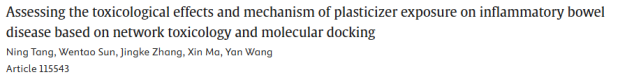 24. 基于网络毒理学与分子对接的增塑剂暴露对炎症性肠病毒性作用及机制研究
