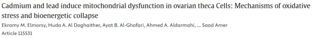 28. 镉和铅通过氧化应激与生物体能量崩溃机制诱导卵巢间质细胞线粒体功能障碍