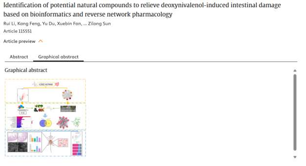 29. 基于生物信息学与反向网络药理学鉴定缓解脱氧雪腐镰刀菌烯醇诱导肠损伤的潜在天然化合物