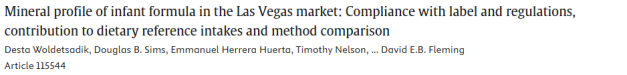 31. 拉斯维加斯市场婴儿配方奶粉的矿物质谱分析:标签与法规符合性、膳食参考摄入贡献及方法比较