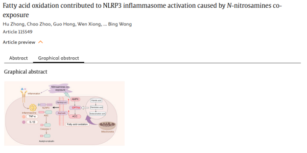 概述:亚硝胺通过AMPK/ACC/CPT1A通路促进脂肪酸氧化紊乱,从而诱导NLRP3炎性小体活化,揭示其致炎新机制。