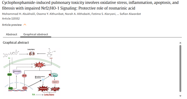 34. 环磷酰胺诱导肺毒性机制涉及氧化应激、炎症、凋亡与纤维化并伴Nrf2/HO-1通路受损:迷迭香酸的保护作用