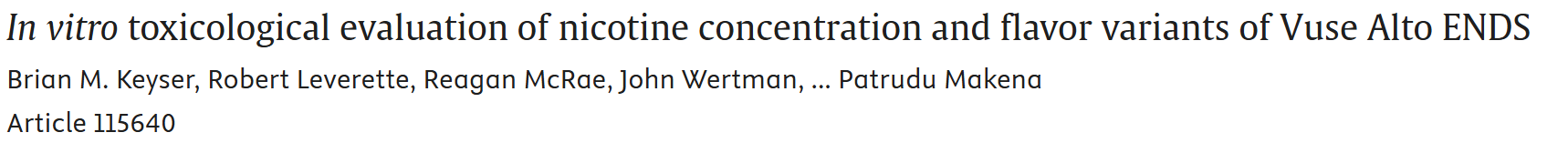 14.Vuse Alto电子尼古丁传递系统(ENDS)不同尼古丁浓度和口味变体的体外毒理学评估