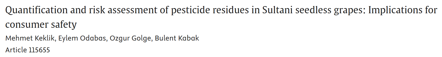 21.无核苏尔坦葡萄中农药残留的定量分析与风险评估:对消费者安全的启示