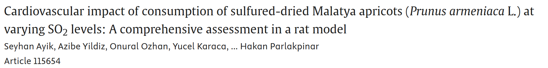 25.不同SO2水平的硫化干马拉提杏(Prunus armeniaca L.)消费对心血管影响:大鼠模型中的全面评估