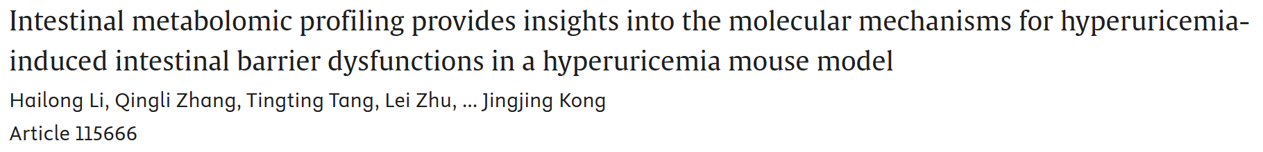 27.肠道代谢组学分析揭示高尿酸血症诱导的肠道屏障功能障碍的分子机制——基于高尿酸血症小鼠模型的研究