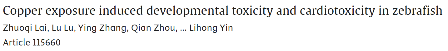 33.铜暴露引起斑马鱼的发育毒性和心脏毒性