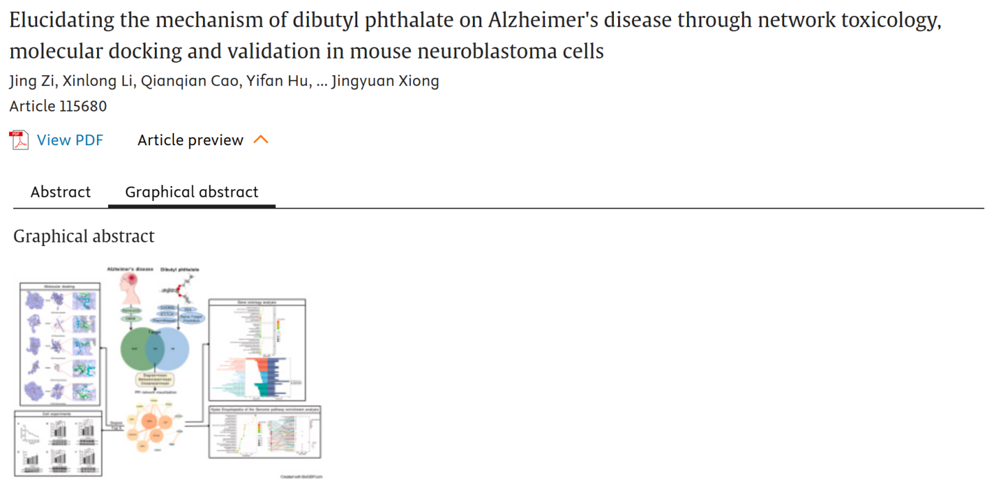 39.通过网络毒理学、分子对接和小鼠神经母细胞瘤细胞验证阐明邻苯二甲酸二丁酯对阿尔茨海默病的机制