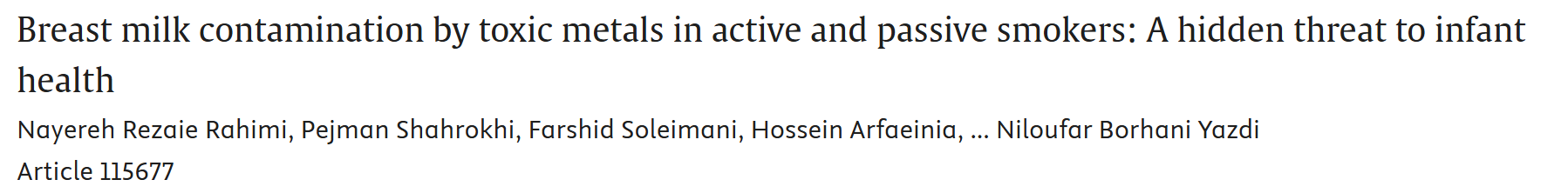 40.吸烟者与被动吸烟者乳汁中有毒金属污染:对婴儿健康的隐性威胁