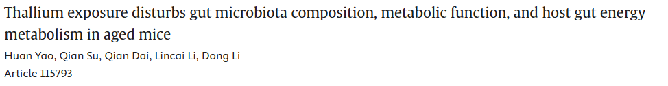 8. 铊暴露扰乱老龄小鼠肠道菌群结构、代谢功能及宿主能量代谢稳态