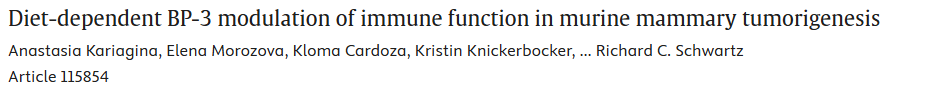 33. 膳食脂肪依赖的二苯甲酮-3对小鼠乳腺肿瘤发生中免疫功能的调节