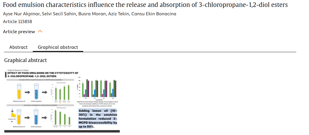 概述:利用体外消化模型及MTT法评估不同粒径乳液对3-MCPDE释放的影响,发现细乳液生物可及性最高,添加柠檬油或增大粒径可显著降低其释放与吸收,提示调整乳液结构是削减该污染物暴露风险的有效途径。