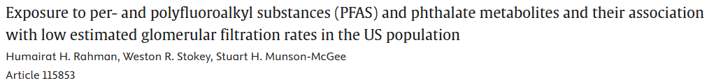 36. 美国人群全氟及多氟烷基物质和邻苯二甲酸酯代谢物暴露与低估算肾小球滤过率的关联