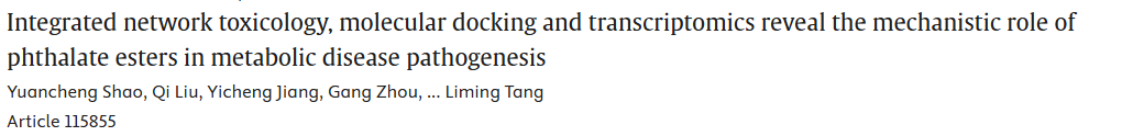 37. 整合网络毒理学、分子对接及转录组学揭示邻苯二甲酸酯在代谢性疾病发病中的机制作用