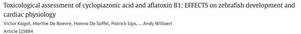 8. 环匹阿尼酸与黄曲霉毒素B₁的联合毒性评估:对斑马鱼发育及心脏生理的影响