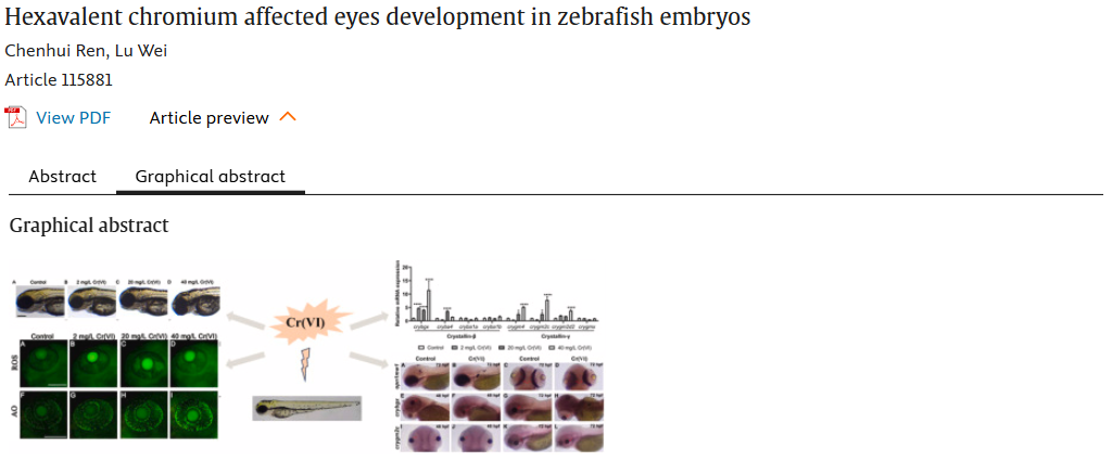 13. 六价铬影响斑马鱼胚胎眼部发育