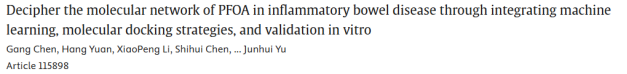 概述:整合机器学习、网络毒理学及体外实验发现,PFOA可能通过调控关键基因及通路促进炎症性肠病发生发展