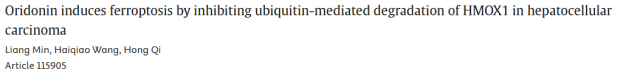 12. 冬凌草甲素通过抑制HMOX1的泛素化降解诱导铁死亡从而抑制肝细胞癌