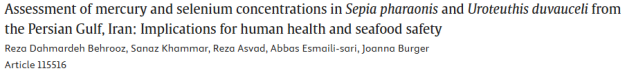 11. 伊朗波斯湾虎斑乌贼和杜氏乌贼中汞和硒浓度的评估:对人类健康和海鲜安全的影响