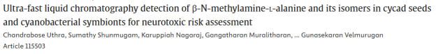 13. 基于超快速液相色谱法检测苏铁种子及其蓝藻共生体中β-N-甲氨基-L-丙氨酸及其异构体的神经毒性风险评估
