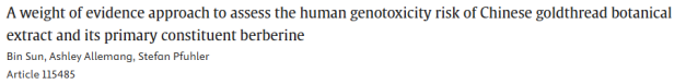 概述:多项体外试验证实黄连提取物中小檗碱具遗传毒性,但临床暴露水平远低于毒性阈值,整体证据不支持其存在实际风险。