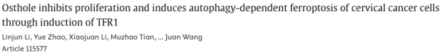 5. 蛇床子素通过诱导TFR1抑制增殖并诱导依赖自噬的铁死亡在宫颈癌细胞中的作用