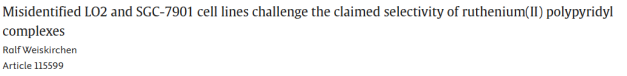26. 错误鉴定的LO2和SGC-7901细胞系挑战了铑(II)多吡啶配合物声称的选择性