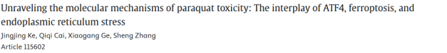 17. 百草枯毒性的分子机制:ATF4、铁死亡与内质网应激的相互作用
