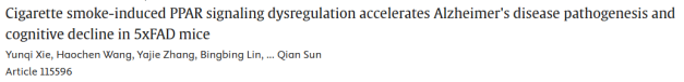 13. 香烟烟雾引起的PPAR信号通路失调加速5xFAD小鼠阿尔茨海默病发病机制及认知功能衰退