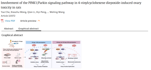 概述:4-乙烯基环己烯二氧化物(VCD)通过抑制KEAP1/NRF2和PINK1/Parkin信号通路诱导大鼠卵巢毒性。第60天和第135天VCD暴露导致卵巢功能受损,而第25天时KEAP1/NRF2和PINK1/Parkin信号通路已被激活。